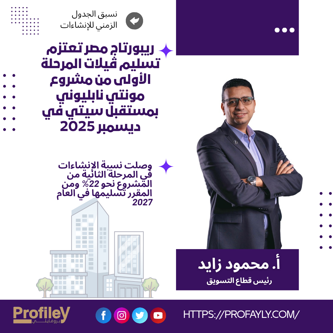 كتب – محمد كمال محمود زايد: أنجزنا 22% من إنشاءات المرحلة الثانية لمونتي نابليوني ونسبق الجدول الزمني تشارك شركة ريبورتاج…